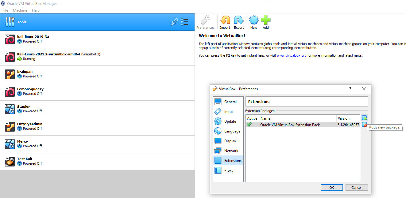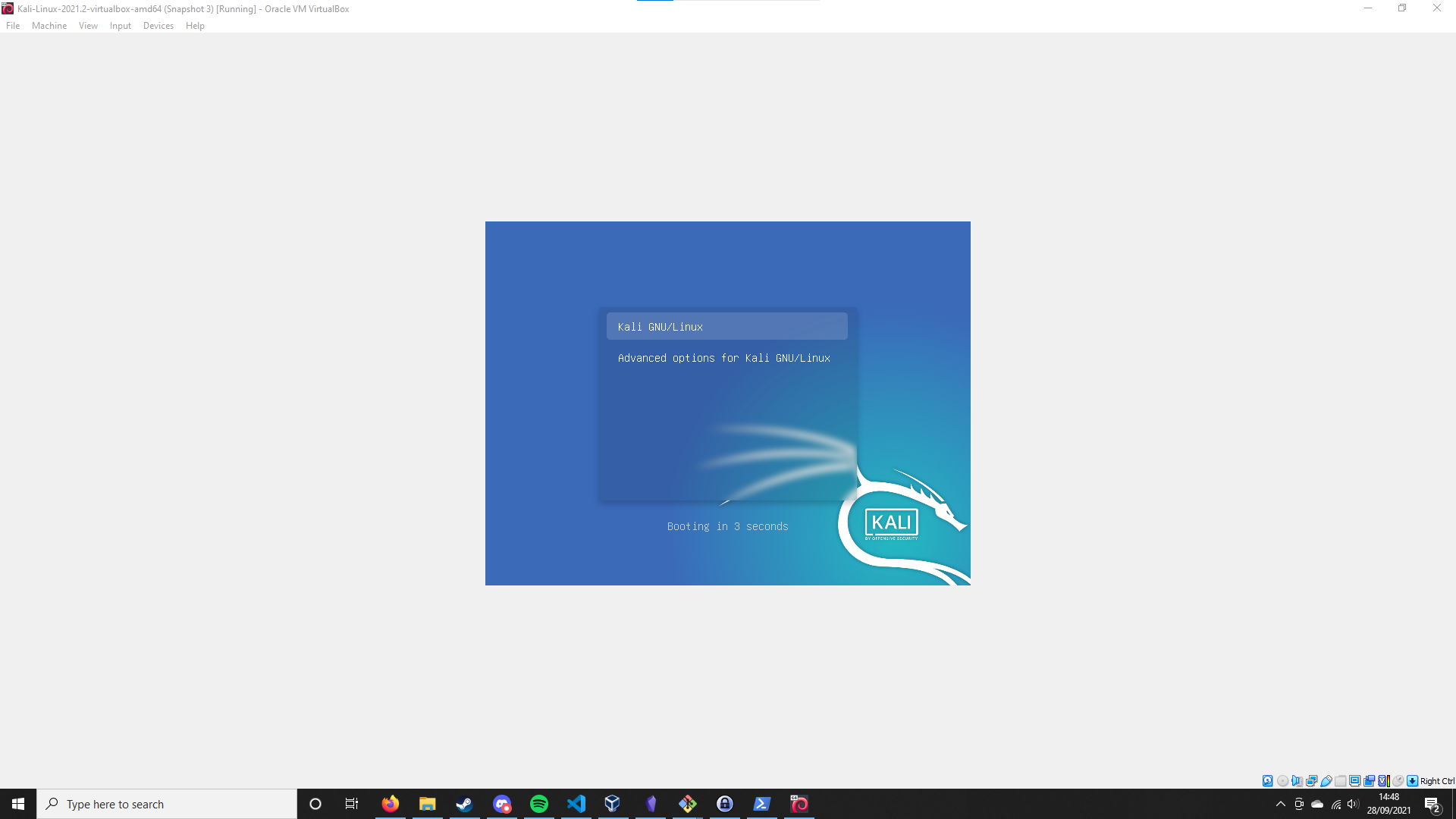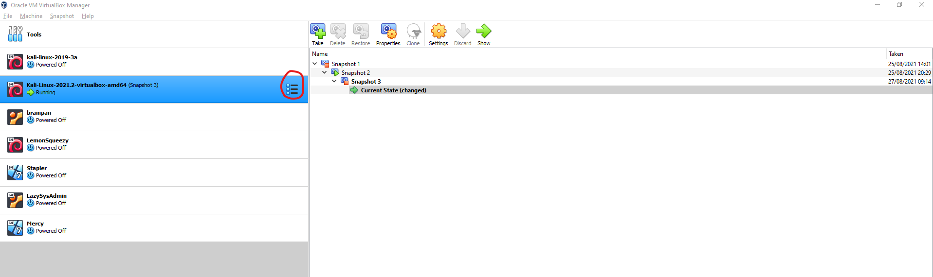 What does this mean? - you can run a machine with a different Operating System (OS) to your normal computer; for example, you could run Kali Linux (a common OS that comes with lots of Cybersecurity tools) as a sub-program on your normal Windows Computer, without having to worry about Dual Booting or Live USBs - you can create machines for dangerous activities like exploit development and malware analysis, or just to experiment with a new OS, and be able to safely discard them or revert them to clean states - you can use machines prebuilt and configured by experts for specific purposes, such as Tracelabs’ Open-Source Intelligence VM - you can create internal networks of machines to practice hacking interconnected machines, such as an Active Directory forest or a mailserver - you can adjust machine specifications, such as amounts of RAM, on the fly (within the limits of your actual computer!)