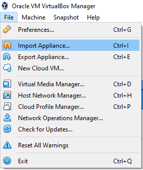 To import a Disk Image, press Ctrl + I or go to File > Import Appliance: