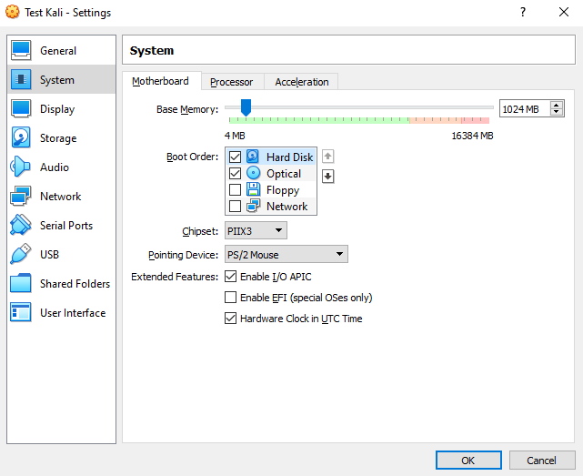 Now create the machine and go to Settings - from here, change the machine’s boot order under the System tab: