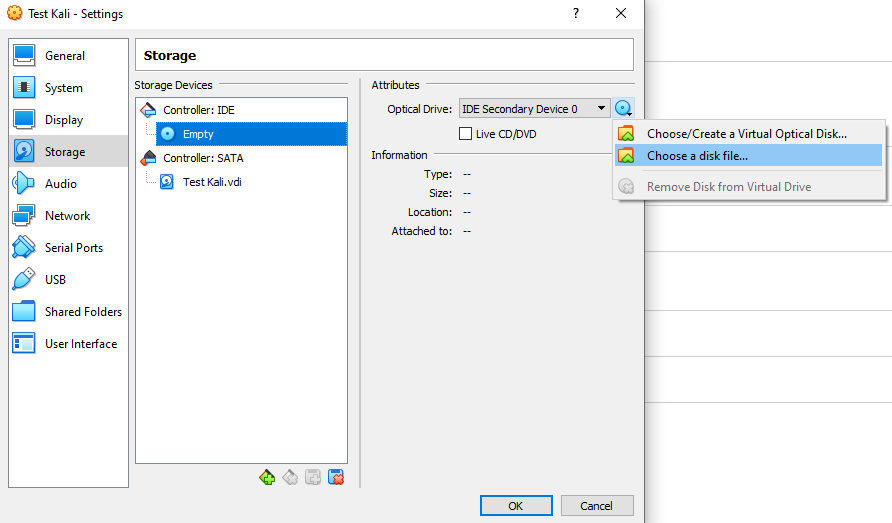 Then you must import the disk image you downloaded into the VM’s optical drive - to do this, go to the Storage tab and click the entry that says Empty: