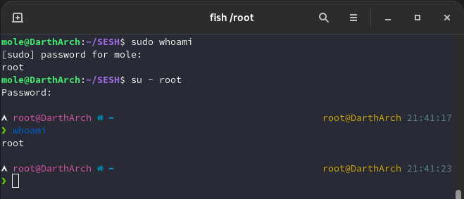 We can also use the sudo command to run commands as the root user, you’ll quite often see people use sudo when a higher level of privilege is needed to run a command. sudo works slightly different to su in that if you are part of a wheel or sudo group it means you can run sudo with your own password instead of the root password. The wheel and sudo groups are set by an administrator and should only be given to trusted individuals, as it effectively makes them an administrator on that computer.