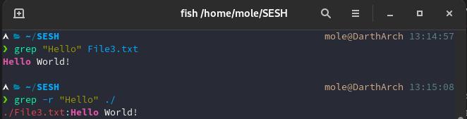Now it’s all good and well trying to find files based on names and permissions, but what about if we want to find text within a load of files? For that we can use the grep command. Grep allows us to search through one or multiple files for text or regular expressions. To search through a single file for a string we can type grep "Search term" /path/to/file. To search through multiple files recursively we can use grep -r "search term" /path/to/directory. The grep command is increadiby useful, you will likely find yourself using it a lot in Linux.